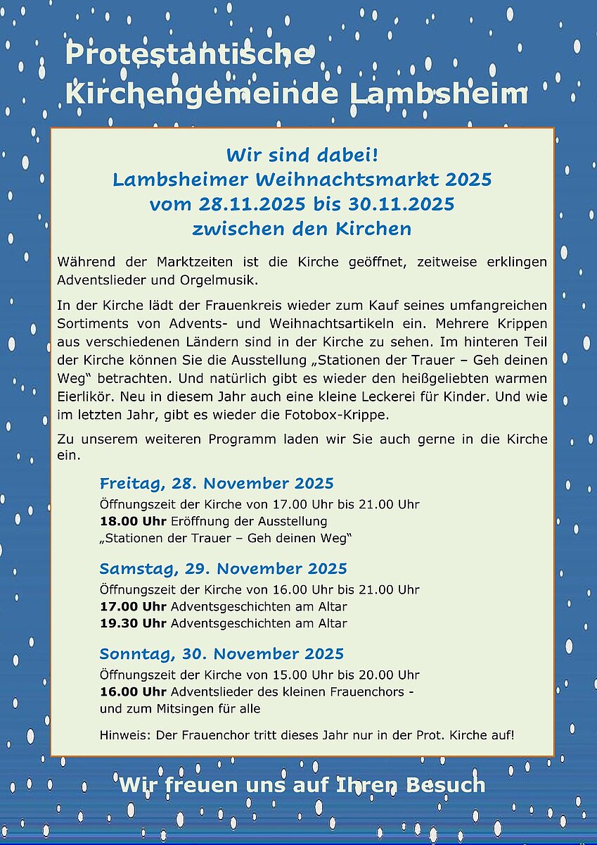 Jeden ersten Mittwoch im Monat lädt das Küchenteam zu einer leckeren Mittagssuppe ins Prot. Gemeindehaus ein.